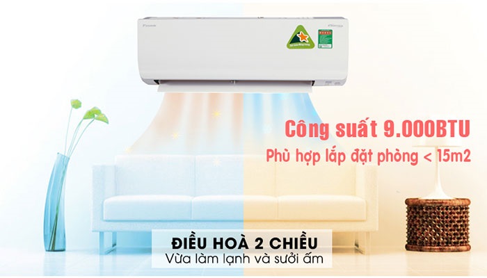 Điều hòa Đaikin 9000 này là sự lựa chọn tối ưu cho phòng có diện tích dưới 15m2.